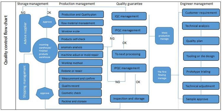 Ražošanas vadība: mēs kontrolējam izejvielu ienākošās pārbaudes kvalitāti, ražošanas procesa pārbaudi, pirmā izstrādājuma pārbaudi, gatavās produkcijas pārbaudi.